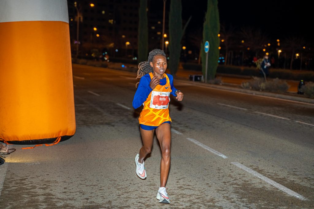 La prueba comenzó a las 18:30 horas con las atletas femeninas. Un total de 150 mujeres tomaban la salida bajo un intenso frío y una pequeña llovizna. Desde la primera vuelta las dos atletas que tomaron la delantera fueron las favoritas Yalemzerf Yehualaw Densa, atleta del NN Running Team, y Ruth Chepngetich. Fue en el ecuador de la prueba cuando Densa rompió el ritmo tomando la delantera hasta la meta, que atravesó con un tiempo de 31:17. La keniata entró segunda, repitiendo así las posiciones que ambas lograran en el reciente medio maratón de Nueva Delhi. En tercera posición entró la francesa Alessia Zarbo, que con un tiempo de 33:00 batía el récord de su país de 10k en ruta sub 20 y sub 23. La primera española fue Carolina Robles, cuarta en la clasificación, con un tiempo de 33:07.