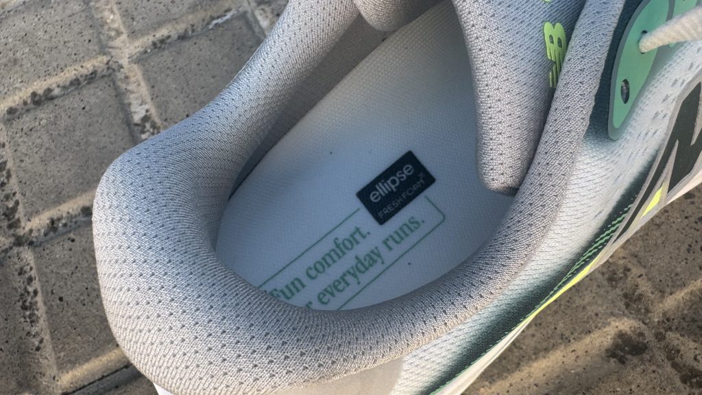 El ajuste en el upper de las New Balance Ellipse es natural, sin puntos de presión, y en carrera se traduce en una sensación de libertad controlada. El pie va sujeto, pero sin estar comprimido. Cuneta con un ahorma no especialmente ancha, aunque con volumen suficiente para pies no excesivamente anchos. Durante la carrera, se agradece especialmente la suavidad del conjunto. La lengüeta y el collar aportan un acolchado que elimina cualquier molestia, incluso cuando se corre durante más de una hora tiempo.